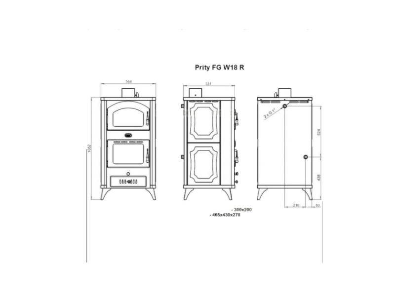 - dimenzije celotne peči: 57 x 53 x 105 cm