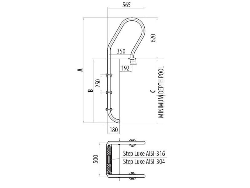 Izbirate lahko med standardno in stensko različico lestve AISI-304, ki sta primerni za vgradnjo v bazen. Ročaji so izdelani iz poliranega nerjavečega jekla s premerom 43 mm, kar zagotavlja trdno oporo in udoben oprijem. Največja obremenitev lestve znaša 150 kg, kar zagotavlja varnost in stabilnost.