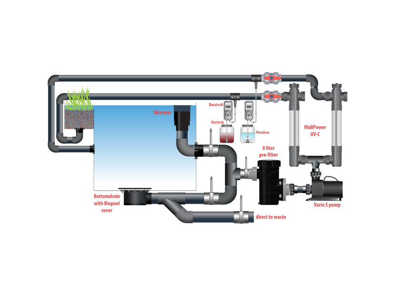 Idealna rešitev za enostavno in kompaktno filtracijo (plavalnih) ribnikov! Ta filtrirni sistem je popolnoma sestavljen in dostavljen v visokokakovostnem poliestru, steklenih vlaknih in gel premazu za vgradnjo v tla. Pokrov je zelene barve, znotraj pa slonokoščene. Potrebno je priključiti napajalni kabel na razdelilno škatlo.