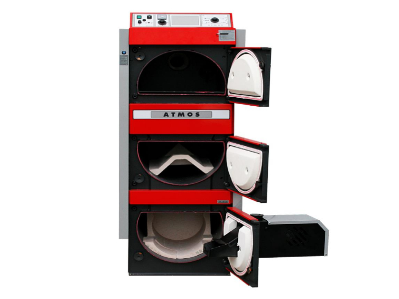 Kotel Atmos DC-SP je kombiniran kotel z dvojnim kuriščem. Zgoraj je uplinjevalna in zgorevalna komora za lesna polena, spodaj dodatna komora z vgrajenim peletnim gorilnikom A25. Pri ročnem kurjenju polen je potrebno priklopiti regulator vleka. Peletni gorilnik ostane na kotlu. Kurjenje s peletnim gorilnikom poteka popolnoma samodejno. Osnovna regulacija omogoča časovno nastavitev delovanja in dvostopensko regulacijo moči. Vsak kotel je opremljen z varnostnim hladilcem, ki pri kurjenju polen omogoča izvedbo termičnega varovanja.