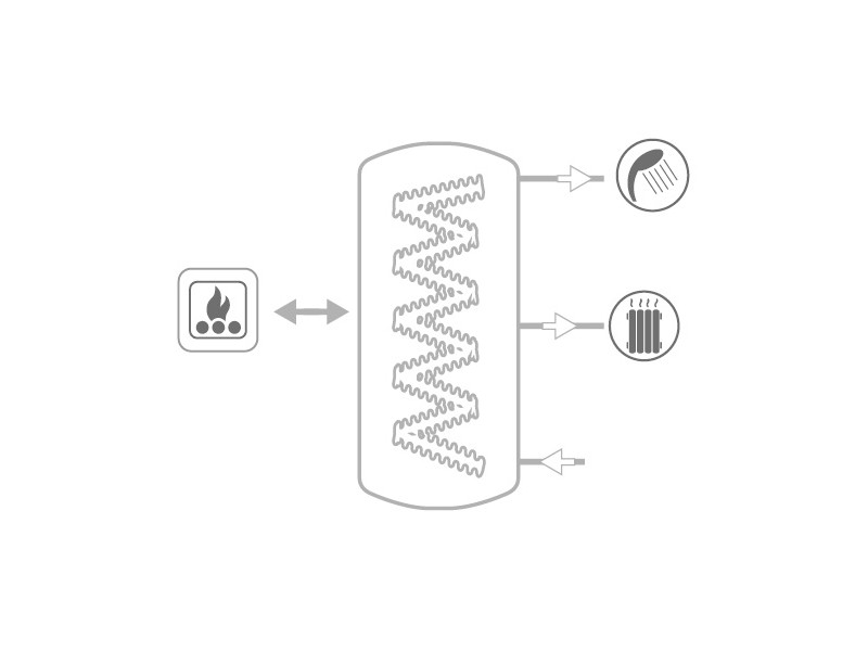Zalogovnik ECO COMBI 1 ima vgrajeno eno spiralno cev iz nerjavnega jekla INOX 316 L za sanitarno vodo. Uporablja se v enotah s prekinjenim energetskim virom z dvojnim namenom: