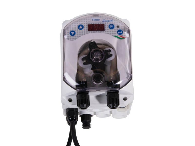 Ponosno predstavljamo dozirno črpalko Simpool, ki predstavlja vrhunsko rešitev za natančno doziranje kemičnih sredstev v vaš bazen. Ta dozirna črpalka je opremljena z naprednim merilnikom časa, ki vam omogoča programiranje različnih programov doziranja po dnevih, pri čemer so programi nastavljivi celo na minuto. S tem inovativnim funkcionalnim sistemom lahko popolnoma prilagodite in optimizirate doziranje glede na potrebe vašega bazena.