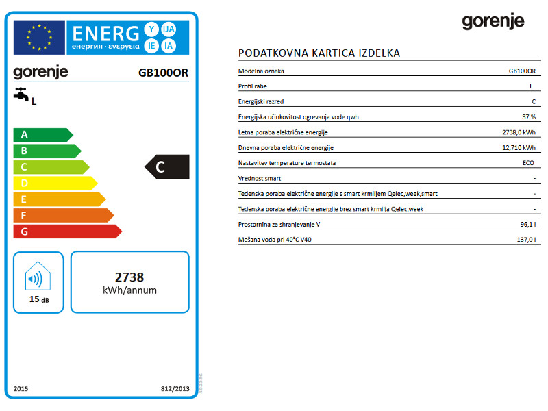 Tehnične lastnosti grelnika vode GB 100
