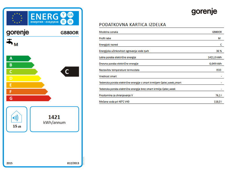 Tehnične lastnosti grelnika vode GB 80