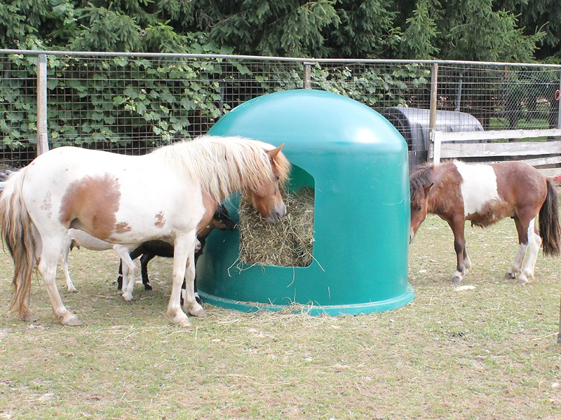 Hiška za seno je izdelana iz kvalitetnega polietilena. Z njo na pašnikih in zunanjih površinah pokrijemo bale sena. Hiška varuje seno pred padavinami. 3 velike odprtine ob strani omogočajo živalim enostaven dostop do krme. Hiško lahko enostavno prenašamo po pašnikih. Hiške so konusne oblike, zato jih med skladiščenjem lahko zložimo eno na drugo.