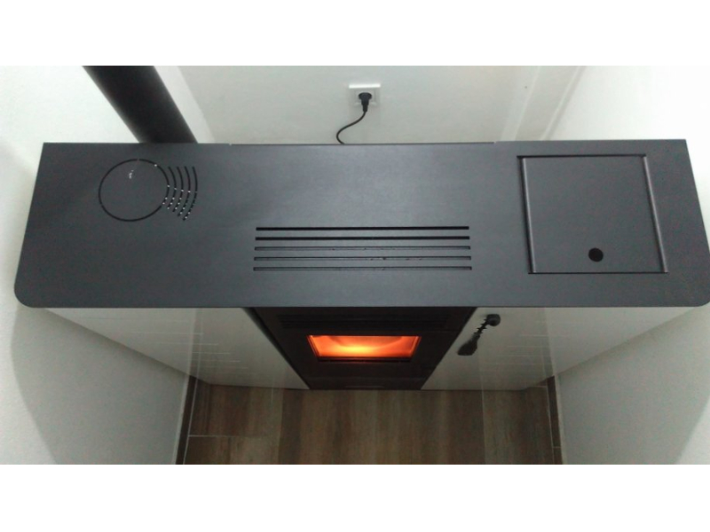 - kaminska peč s pomočjo polžastega transporterja samodejno dobavlja pelete in jih vname s pomočjo električnega grelnika