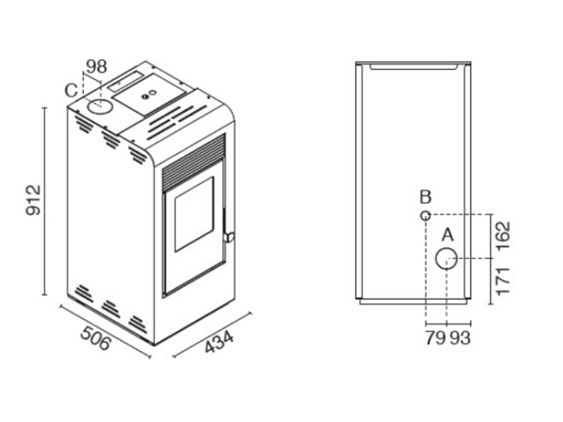 - minimalni odmik od vnetljivih materialov: bočno: 25 cm, zadaj: 10 cm, razpored: 100 cm