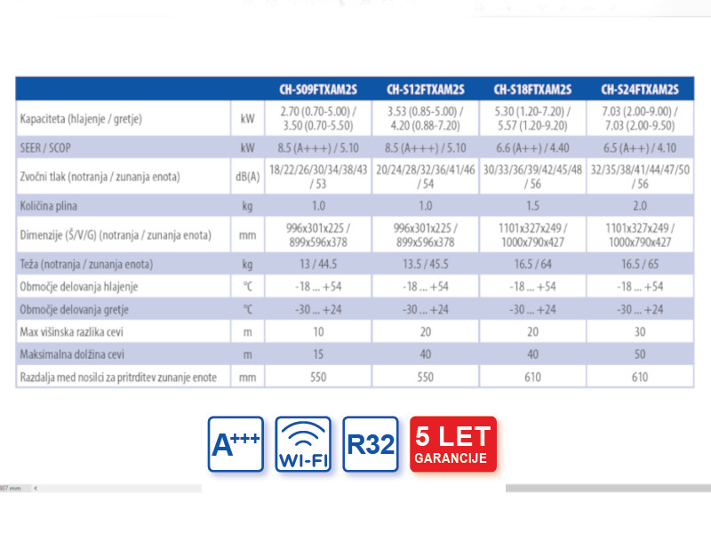 - energijski razred hlajenje A+++, gretje A++
