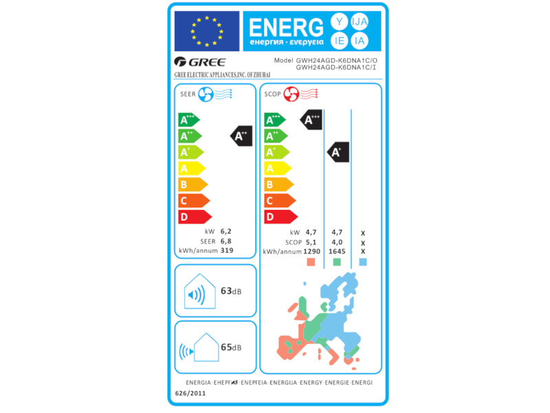 SEER/SCOP: 6,5/4,0