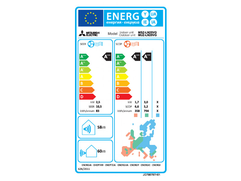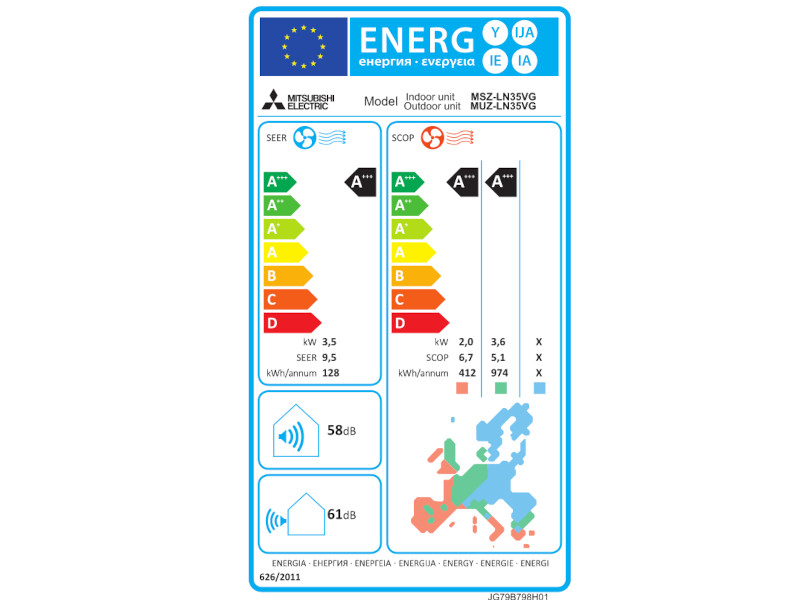 - najvišji energetski izkoristek na tržišču - energetski razred A+++ za ogrevanje in hlajenje