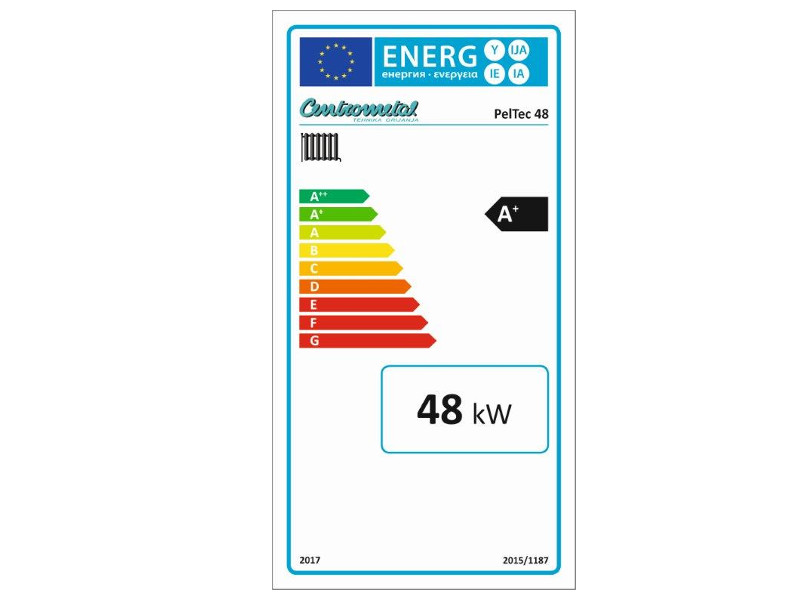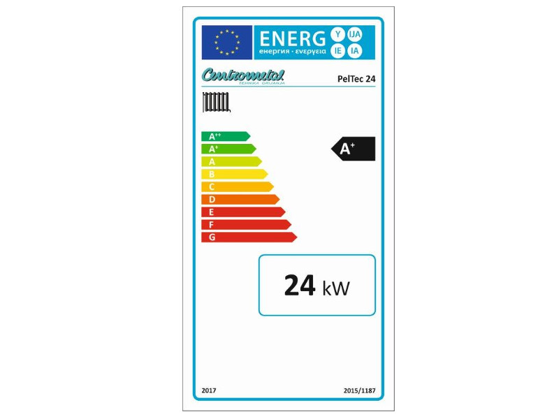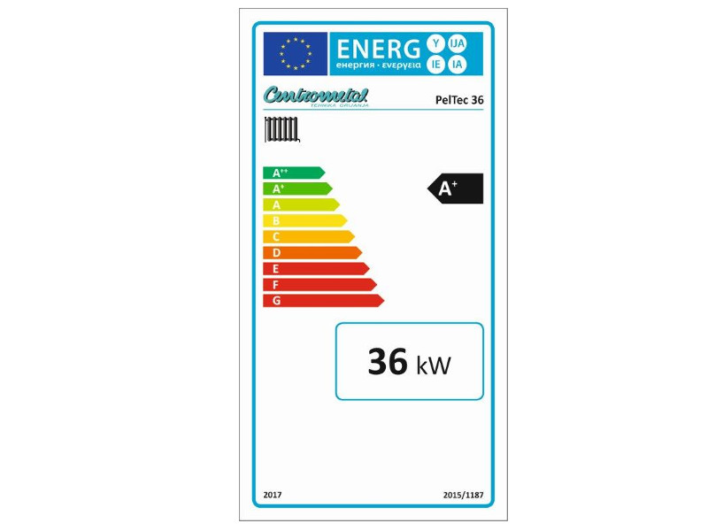 - Toplovodni kotel za centralno ogrevanje Pel-Tec z vgrajenim integriranim gorilnikom na pelete.