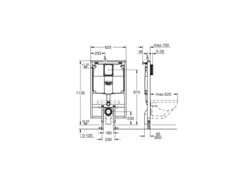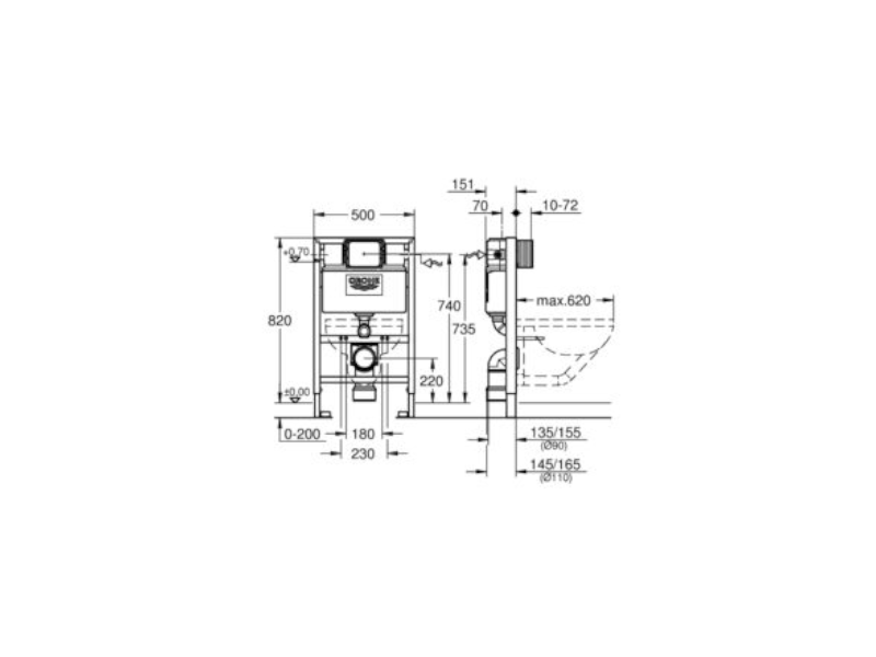 Grohe Rapid GD 2 je podometni element za WC za suho vgradnjo višine 130 cm. Lahko se montira na steno ali v predelno steno in je kompletno predsestavljen.