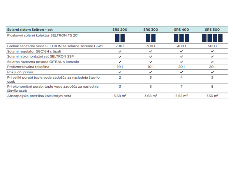 | Solarni paket SRS 200 | Solarni paket SRS 300 | Solarni paket SRS 400 |