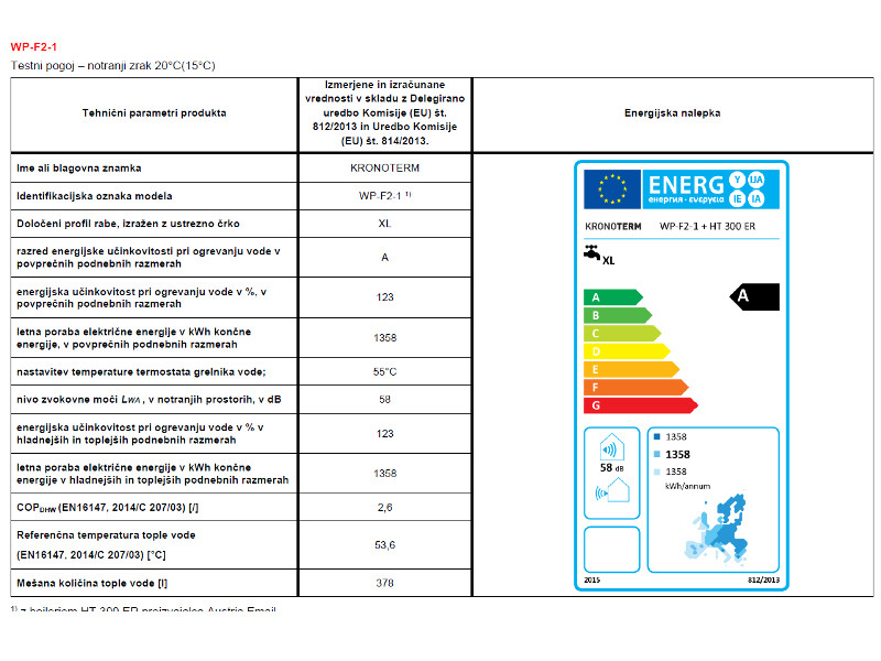 Podatkovna kartica sanitarne toplotne črpalke Kronoterm za obstoječ bojler WP-W2-1 / PV PW