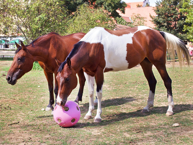 Žoga za seno spodbuja počasno krmljenje s senom in zamoti konja, da se ne dolgočasi. Žoga je posebej primerna za uporabo v hlevih ali na pašnikih.